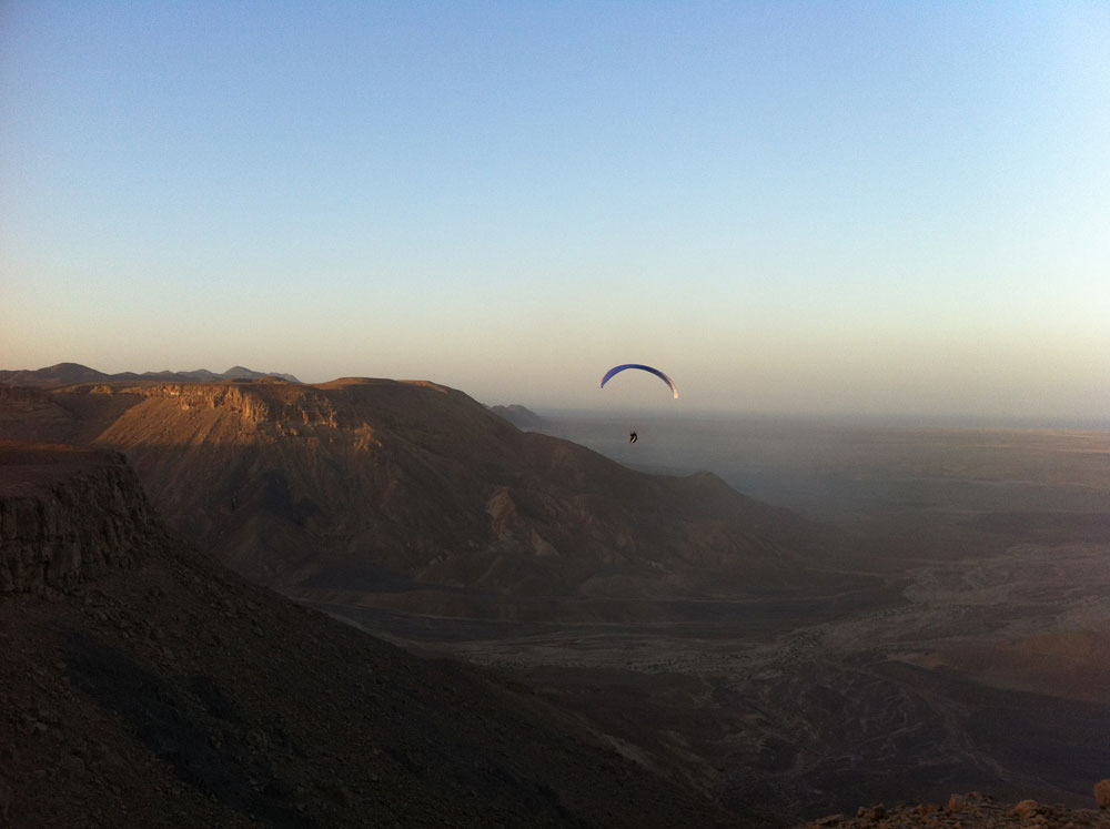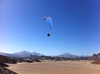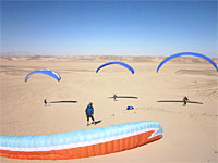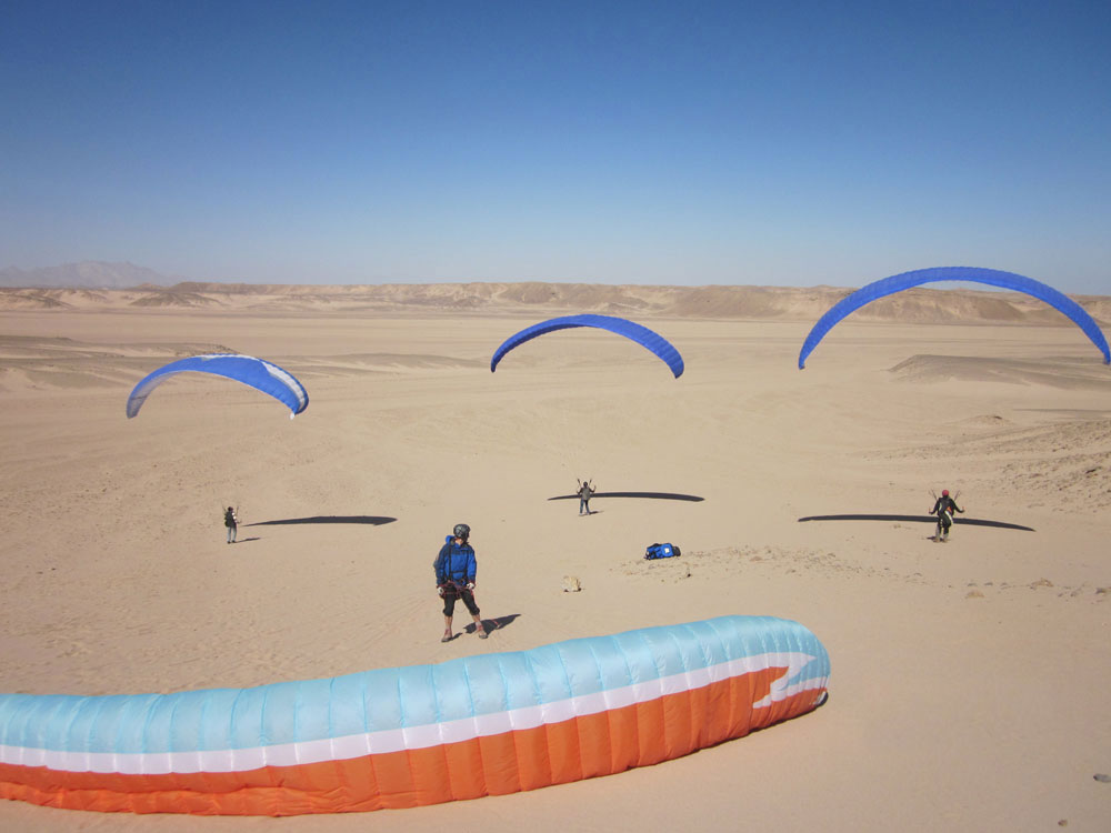 We found various opportunities to practice paragliding. Many small sandy slopes offer ideal landing conditions. A laminar wind, often lasting for several hours and large obstacle-free surfaces, with fine soft sand and warm temperatures, especially in winter, provide us with a “game desert” like a picture book.