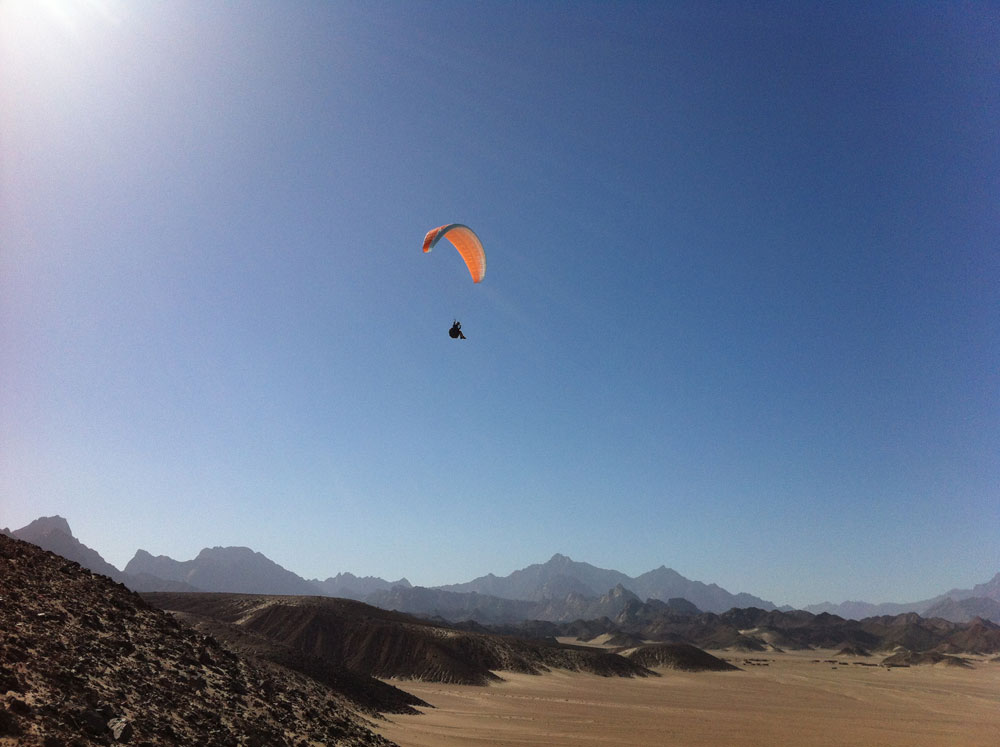 Since 2012 we offer exclusively for the first time in Egypt organized paragliding flights and adventure tours. Our tour begins with pickup at the airport, followed by the exploration of our flight areas as well as consultation on additional excursions which can be booked individually on site.